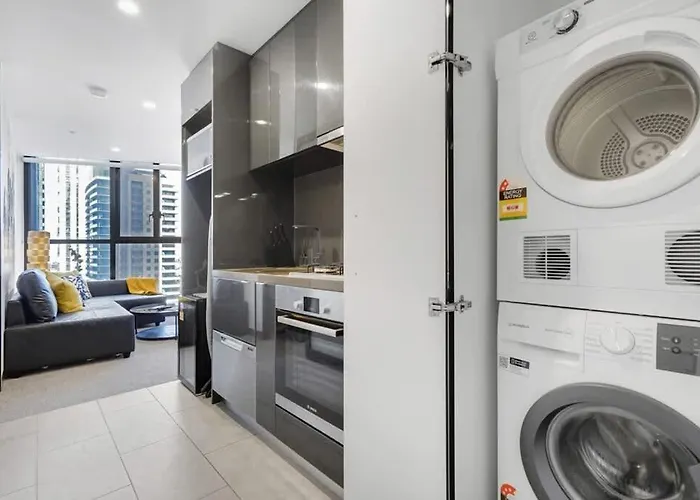 Die Ferienwohnung Banque 88 - Ultimate Southbank Convenience For 2 bietet zudem einen Wäschetrockner und Handtücher im Badezimmer für zusätzlichen Komfort.